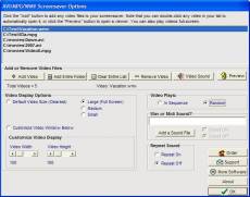 Keywords: multimedia, video screensaver, avi screensaver, mpeg screensaver, avi, mpeg, mpg, screensaver, screensavers, video player, view avis, view mpegs, screen, saver, savers, maker, creator, videos, animation, graphics, images, photos, displayer View your own MPEG, AVI, or WMV videos as a screensaver. You can play your videos randomly or in sequence, and you can adjust the size of the videos playing or stretch your videos full-screen if you wish. Video sound is also included, and you also have the option of turning off all video sound! Other options include previewing each video from the settings window, playing a midi or wav sound file, repeating the sound file, and password protection. You can also choose to play videos at their default video size for best video quality. Installation and uninstallation are included, and there are no additional run-time files needed. (Runs on ALL Windows systems).
