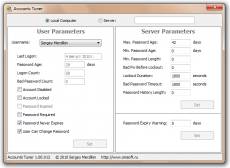 Keywords: Account, Password, Security The program intended for system administrators and advanced PC users. It allows to set up some extra security settings of Windows accounts. Usually such settings are changed by means of a local or group (domain) security policy. There are no native tools to change most of these settings in home versions of Windows. This program allows to change max/min password age, min password length, account lockout settings, allows to enable/disable any account, change password expiration settings and so on.