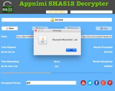Keywords: appnimi sha512 decrypter, sha512 decrypter Appnimi SHA512 Decrypter helps in decrypting any SHA512 hash. In appropriate infrastructure it works at a speed of more than 1 million words per second. One of the fastest true SHA512 Decrypter available in the market.SHA512, is probably the most easily available highly secure hashing algorithm. Above all it is FREE. * FREE Download * Stop Restart the decryption process * Peak speed of above 1 million word per second * Detailed report of the decryption process * Brute Force and Dictionary method