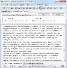 Keywords: text-to-speech, voice, clipboard, rate, pitch, read, save, file, mp3, wav, ogg, wma, SAPI The program converts text to speech. All computer voices installed on your system are available to Balabolka. The on-screen text can be saved as a WAV, MP3, OGG or WMA file. The program can read the clipboard content, view the text from AZW, CHM, DjVu, DOC, EPUB, FB2, LIT, HTML, MOBI, ODT, PRC, PDF and RTF files, customize font and background colour, control reading from the system tray or by the global hotkeys. Balabolka uses various versions of Microsoft Speech API (SAPI); it allows to alter a voice's parameters, including rate and pitch. The user can apply a special substitution list to improve the quality of the voice's articulation; this feature is useful when you want to change the spelling of words. The rules for the pronunciation correction use the syntax of regular expressions. Balabolka can save the synchronized text in external LRC files or in MP3 tags inside the audio files. When an audio file is played with players on a computer or on modern digital audio players, the text is displayed synchronously (at the same way, as lyrics for songs).