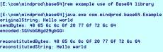 Keywords: Base64, Base64u, encode, decode, armouring, printable, 6-bit, 8-bit, UUENCODE, UUDECODE Base64 is a freeware way of encoding 8-bit characters using only ASCII printable characters similar to UUENCODE. UUENCODE embeds a filename where BASE64 does not. You will see BASE64 used in encoding digital certificates, in encoding user:password string in an Authorization: header for HTTP. The spec is described in RFC 2045. Don't confuse Base64 with x-www-form-urlencoded which is handled by java.net.URLEncoder.encode/decode or Base64u. Base64 armouring uses only the characters A-Z a-z 0-9 +/=. This makes it suitable for encoding binary data as SQL strings, that will work no matter what the encoding. Unfortunately + / and = all have special meaning in URLs. Base64u gets around this problem. It is a variant on Base64 that uses - _ and * in preference to + / and =, so that it can be used in URLEncoded contexts with or without URLEncoding. Use base64 like this: // Base64 armouring import com.mindprod.base64.Base64; ... // sample byte array to encode byte[] toSend = { (byte)0xfc, (byte)0x0f, (byte)0xc0}; // create encoder object Base64 base64 = new Base64(); base64.setLineLength( 72 ); // default // encoding a byte[] String send = base64.encoder( toSend ); // decoding a byte[] byte[] reconstituted = base64.decoder( sent ); use Base64u the same way: // Base64u armouring import com.mindprod.base64.Base64u; ... // sample byte array to encode byte[] toSend = { (byte)0xfc, (byte)0x0f, (byte)0xc0}; // create encoder object Base64u base64u = new Base64u(); base64u.setLineLength( 72 ); // default // encoding a byte[] String send = base64u.encoder( toSend ); // decoding a byte[] byte[] reconstituted = base64u.decoder( sent ); For an example that starts and ends with a String, see Example.java to run: java.exe com.mindprod.base64.Example