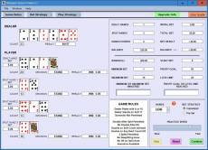 Keywords: Blackjack, Strategy, Simulator, Practice, System, Bet, Play Simulate the game of Blackjack. Set Game Rules, Play Strategy and Bet Strategy. Load Basic Play Strategy automatically for any combination of game rules, and then make strategy adjustments for any player/dealer card situation. Establish Bet Strategy by setting formulas to calculate wagers after a loss or win, or Pre-Set wagers according to a progression betting system. Practice your system by monitoring the simulation as bets are wagered, cards are displayed, decisions are made and results are shown according to your strategy setup. Adjust simulator speed to suit your skill level. Adjust play strategy in separate tables for the Dealt hand, the Dealt hand after a hit, a Split hand, and a Split hand after a hit.