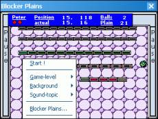 Keywords: games, sound, grafic, arcade, break-out, windows ce, pocketpc, mobile, download, PowerXGames, DirectX, development, software Blocker Plains is a Breakout game with six levels from very easy until very difficult and individual, an unlimited number of balls, 50 stone plains and a freely movable Blocker. The objective of the game is, through fast clear away of the stone plains, to be accepted into a Champions list. Seven game accompanied sound themes and changing backgrounds makes Blocker Plains a fun experience. The Blocker size, the size and speed of the balls and the ball gravity are changed variably through the game levels. Six players can participate simultaneously at the game. For Windows CE is offered Blocker Plains for different processors, that were not tested all by us. Please test Blocker Plains with our test-version on your CE-device therefore beforehand.
