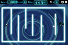 Escapa de las trampas y evita herirte! Tu tarea en este juego es guiar las bolas para llegar a la salida de los laberintos sin chocar con las paredes dentro del plazo establecido. Puedes utilizar las cuatro flechas del teclado para controlar las palancas. Al comienzo del juego tendrás 5 bolas, una bola será deducida si chocas contra la pared, y tendrás que volver a empezar el nivel. El juego terminará cuando las bolas se hayan terminado. Cuando completes el nivel, tu puntuación será calculada en base al número de bolas y tiempo restantes, más un bono por nivel. También recibirás bolas extras y tiempo, y serán añadidos al tiempo restante del nivel anterior y acumulados en el siguiente nivel. Clica Enter sobre tu teclado para proceder con el nivel siguiente. Ten en cuenta que en cada nivel un cierto número de bolas aparecerán en el laberinto, cada una de ellas con diferentes efectos: el color amarillo disminuye la bola de aproximadamente un cuarto de su tamaño original, y el “aqua” Súper tamaño dobla el tamaño de la bola; la “dizzy Slow” disminuye la velocidad de la bola; la “flash Haste” acelera la bola, "the pick up” con un signo positivo proporciona tiempo extra, y el “pick up” con un signo negativo deduce el tiempo restante. Si la bola se mueve hacía otro destino cuando un efecto está ocurriendo, el nuevo efecto remplazará al anterior. Excepto los relacionados con el tiempo, el resto de efectos tendrán una duración de 20 segundos, ten cuidado cuando te los encuentres porque no siempre podrían ser buenos para ti.