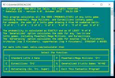 Company: Ion Saliu Country: United States of America, Pennsylvania, Gettysburg ASP member: No Company Web site: http://saliu.com/membership.html Site of program: http://saliu.com/calculator.html Application info: http://saliu.com/calculator.html Author: Ion Saliu Sales email: reason@saliu.com Support email: reason@saliu.com License type: Freeware Class: Games & Entertainment::Casino & Gambling Specific: Categories: Mathematics, Science, Lotto, Lottery, Casino, Gambling, Games Platform: OS: WinXP, WinVista, WinVista x64, Win7 x32, Win7 x64, Win2000, WinServer, Win98, WinOther System requirements: It works best at the command prompt for best speed; all 32/64 bit versions of Windows supported. Language: English Limitations: No limitations.