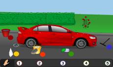 First start by getting the car out from the garage, by touching the arrow on the screen. Second, match the colors with the objects on the screen by dragging the corresponding number. On the third section, drag the flashing item to the spot flashing on the car to start washing the car. Finally on the last section of the game, take this sport car for a test drive and unlock different colors and tires.