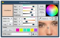 Keywords: Color Picker, Color, Eyedropper, Screen Magnifier, Color scheme ColorMania is a extended colorpicker with an eyedropper component and a screen magnifier. ColorMania lets you easily select and modify colors. It's the ideal tool for website and application developers. You can pick colors from anywhere on your screen and interactively change the RGB and HSV values. The latest version has undo/redo functionality. ColorMania supports more color formats than any other color picker and can therefore be used in combination with a large number of other graphical programs (Photoshop, Gimp, Illustrator,..) and in different areas (web design, printing,...).