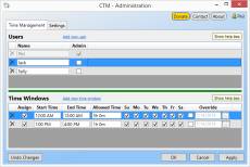Keywords: computer time, PC time, time limit, timer, logon, logoff, kids, parenting, parental controls Computer Time Manager (CTM) lets you control exactly when your kids or anyone else can use the PC, and for how long. You create a daily/weekly schedule and CTM enforces it, logging users off when their time is up. Features: - Utmost flexibility in scheduling allowed computer time. - Set up time windows and limits for only certain users or all users. - Enforce limits by time of day and/or day of week. - Can override usual limits for special occasions, rewards, or penalties. - Users can monitor their time left, pause their session, log off and back on later, etc. - Users get a warning when time is almost up. - Free for personal and commercial use. CTM is user-supported software, fully functional with no limitations. If you find it useful, please consider a donation to help ensure ongoing support, maintenance, and new features. With your help we can continue to provide quality, community-supported software as an alternative to expensive commercial software.
