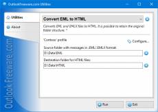 Keywords: free, freeware, outlook, add-in, add-on, eml, html, convert This free utility converts messages from the EML to HTML files. The EML file format is used by mail programs to store emails. Most email clients can save mail to EML files. However, to see the contents of the messages in the EML format (for example recipients, subject, or text) and open attachments, you must use additional programs. The easy way to view EML messages without having to install other programs is to convert them to HTML. After converting EML to HTML, you can view the emails in any web browser. For example, you can save these emails to a cloud-based drive and work with your email from any device anywhere in the world. This is a convenient way to back up your email messages. Converted HTML files will contain the sender's and recipients' addresses, subject and text of the message, as well as links to attachment files. If the original message was in the HTML format, the original formatting will persist. Attachment files will be saved to a separate folder next to each HTML file. Key benefits of the utility: - Converts messages from EML to HTML files, preserving the original Outlook folder structure. - Saves attachments to a separate folder, including inline and hidden attachments. - Saves embedded messages and other Outlook items to MSG files. - Stores sender and recipient addresses from EML messages to HTML files. - Safely converts EML files to HTML format, renaming or skipping existing ones if necessary. - Contains a command line application to batch convert messages from EML to HTML. Use the command line application to run the tool in your batch files, scripts, and Windows Task Scheduler. These scenarios enable you to convert EML messages to HTML by a schedule, and also allow you to convert a large number of EML files from different locations with a complex folder structure. If you want to convert messages from Outlook rather than EML files, use our utility for exporting messages from Outlook to HTML.