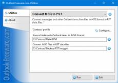 Company: Relief Software Country: United States of America, TX, Houston ASP member: No Company Web site: http://www.outlookfreeware.com Site of program: http://www.outlookfreeware.com Application info: http://www.outlookfreeware.com/en/products/all/outlookconvertmsg2pst Author: Outlook Freeware Sales email: info@outlookfreeware.com Support email: info@outlookfreeware.com License type: Freeware Class: Communications::Other E-Mail Tools Specific: Internet Categories: Outlook add-ins, Outlook addins, Outlook addons, Outlook Add-ons, Microsoft Email Add-ins, Office add-ins, E-Mail add-ins, E-Mail addins, E-Mail add-ons, E-Mail addons, E-Mail Tools, E Mail Tools, Mail Tools, Mail Utilities, Email, Работа с почтой, Почта, Email-Software, Internet & Network, Internet, Интернет, Outlook, E-Mail, Email - Miscellaneous, Communications, Интернет & сеть Platform: Windows OS: Win2000, WinXP, Win7 x32, Win7 x64, Windows 8, Windows 10, WinServer, WinOther, WinVista, WinVista x64 System requirements: Microsoft Outlook 2003/2007/2010/2013/2016/2019/365 Language: English, Russian Limitations: