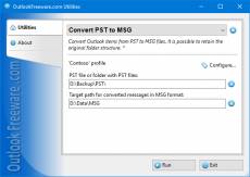 Company: Relief Software Country: United States of America, TX, Houston ASP member: No Company Web site: http://www.outlookfreeware.com Site of program: http://www.outlookfreeware.com Application info: http://www.outlookfreeware.com/en/products/all/outlookconvertpst2msg Author: Outlook Freeware Sales email: info@outlookfreeware.com Support email: info@outlookfreeware.com License type: Freeware Class: Communications::Other E-Mail Tools Specific: Internet Categories: Outlook add-ins, Outlook addins, Outlook addons, Outlook Add-ons, Microsoft Email Add-ins, Office add-ins, E-Mail add-ins, E-Mail addins, E-Mail add-ons, E-Mail addons, E-Mail Tools, E Mail Tools, Mail Tools, Mail Utilities, Email, Работа с почтой, Почта, Email-Software, Internet & Network, Internet, Интернет, Outlook, E-Mail, Email - Miscellaneous, Communications, Интернет & сеть Platform: Windows OS: Win2000, WinXP, Win7 x32, Win7 x64, Windows 8, Windows 10, WinServer, WinOther, WinVista, WinVista x64 System requirements: Microsoft Office Outlook 365/2019/2016/2013/2010/2007 Language: English, Russian Limitations: For non-commercial, home use only.