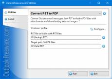 Keywords: free, freeware, outlook, add-in, add-on, pst, pdf, convert, messages Free PST to PDF converter. This utility converts email messages from PST format, which is strictly used by Microsoft Outlook, to the Adobe PDF document format, which is available across all platforms and operating systems. In contrast to online converters, our utility works strictly on your computer. Information from the PST data file is not uploaded anywhere. Your data will not fall into the wrong hands. Our utility does not require manual connection of PST data files to your Outlook profile. Once you have everything set up and running, the work will be done automatically. It doesn't matter how many PST files you need to convert. To convert PST to PDF: - Select the source folder with the PST files and the target folder for resulting PDF documents. - Specify whether to create a separate folder for each PST file or create the original Outlook folder structure. - Optionally, you can configure additional settings and filters, such as the date range, sent or received messages, and others. - Run the utility; everything else will be done automatically. The program can bulk convert PST to PDF in batch scripts, using PowerShell, Task Scheduler, and other automation tools. To schedule PST to PDF conversion, use the command-line application provided by the product along with the standard Windows Task Scheduler. This allows you to flexibly configure schedule parameters and use the utility in your scenarios even without logging into a user account.