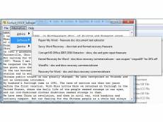 С помощью Графического интерфейса и Perl кодированных заднего конца, коррумпированных DOCX Сильванер часто сможет извлечь текст из поврежденных Word 2007/2010 docx файлов где не Word 2007/2010. Он может также просто использоваться как средство просмотра текста в docx файл без необходимости Word 2007/2010. Извлеченный текст можно даже редактировать в интерфейсе. Кроме того, теперь он pre-extraction zip ремонт шаг и меню «Альтернативы», которое улучшает свою полезность. Альтернативы меню включает ярлык для Recoveronix' онлайн файл ремонт и упоминает купон «S2SERVICES» хорошо до 05/01/13 для свободных восстановления, $39 поп значение.