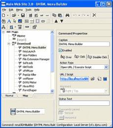 Keywords: dhtml menu, dynamic html menus, dhtml examples, dhtml drop down menus, dhtml formatting, html dropdown menu, dhtml scripts, dhtm Create professional-looking dhtml drop down menus for your web site without writing any code or dhtml scripts. No html programming or dhtml formatting is necessary; by using the DHTML Menu Builder you can easily create pull down menus enhanced with images and special effects and add them to your web site in minutes. The software offers an intuitive user interface that frees up your time to focus on web site menu structure, design, and usability rather than on writing dhtml code. The code generated by DHTML Menu Builder is 100% compatible with Internet Explorer 4, 5, 5.5 and 6.0, Netscape Navigator 4, 6 and 7, FireFox, Mozilla, Safari, Konqueror and Opera 7, running under Windows, Mac, and Linux, so you don't have to worry about testing the menus under these multiple platforms - it's already been done for you. Download DHTML Menu Builder today and try all of its great features for yourself!