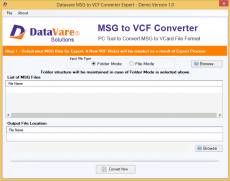 Company: DataVare Software Country: South Africa, Gauteng, Bryanston ASP member: No Company Web site: http://www.datavare.com Application info: http://www.datavare.com/software/msg-to-vcf-converter-expert.html Author: Albert Desouza Sales email: pad@datavare.com Support email: pad@datavare.com License type: Shareware Class: System Utilities::File & Disk Management Specific: Categories: Utilities :: System Utilities, Email :: Misc. Email Tools Platform: Windows OS: Win2000, WinXP, Win7 x32, Win7 x64, Windows 8, Windows 10, WinServer, WinOther, WinVista, WinVista x64 System requirements: Pentium II 1 Ghz, 1GB RAM, Minimum 512 MB Space Language: English Limitations: Convert only first 10 items from each folder