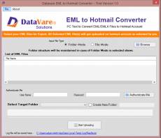 Company: DataVare Software Country: South Africa, Gauteng, Bryanston ASP member: No Company Web site: http://www.datavare.com Application info: http://www.datavare.com/software/eml-to-hotmail-converter-expert.html Author: Albert Desouza Sales email: pad@datavare.com Support email: pad@datavare.com License type: Shareware Class: System Utilities::File & Disk Management Specific: Categories: Utilities :: System Utilities Platform: Windows OS: Win2000, WinXP, Win7 x32, Win7 x64, Windows 8, Windows 10, WinServer, WinOther, WinVista, WinVista x64 System requirements: Pentium II 1 Ghz, 1GB RAM, Minimum 512 MB Space Language: English Limitations: Export only 10 items of each folders