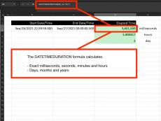 Date Version Status Release history 01 Oct 2021 2.0 New Release Calculates elapsed time in Excel, with millisecond accuracy! The DATETIMEDURATION formula calculates the difference between two dates or two times in Excel. Great for analyzing timestamped files, SCADA logs, time series data, or cumulative hours when the results must be exact!