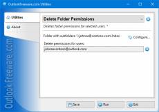 Keywords: free, freeware, outlook, add-in, add-on, folders, permissions, delete Free tool for removing Outlook folder permissions for selected users in bulk. This utility removes selected users from permission lists of specified Outlook folders in Office 365, Exchange Server mailboxes and Exchange Public Folders. The utility works with user permissions on folders of any type: mail, calendars, contacts, tasks and others. It allows you to revoke the permissions of selected and anonymous users, as well as default folder permissions. With standard Outlook tools, you cannot remove the desired users from multiple folders permissions at once you must edit the permissions for each folder individually. Also, you cannot process multiple mailboxes or Exchange public folders. Outlook provides no way to edit the folder access rights by schedule and from the command line. Our utility extends Outlook capabilities for editing permissions of Outlook, Office 365, and Exchange Server folders. You just need to select the required folders in the mailbox, select the users removed from the access lists and run the utility. After you remove the user from the permission list, Outlook and Exchange automatically apply the default permissions. Thanks to the support of the command line, you can use the utility in batch files and scripts. This can be useful in various scenarios: from scheduled run to migrations and centralization of the management of access rights to Outlook and Exchange folders.
