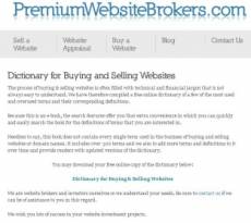 Company: Premium Website Brokers Country: Canada, ON, Toronto ASP member: No Company Web site: http://www.premiumwebsitebrokers.com Site of program: http://www.premiumwebsitebrokers.com/dictionary-for-buying-and-selling-websites/ Application info: http://www.premiumwebsitebrokers.com/dictionary-for-buying-and-selling-websites/ Author: Customer Support Sales email: info@premiumwebsitebrokers.com Support email: info@premiumwebsitebrokers.com License type: Freeware Class: Education::Dictionaries Specific: Categories: eBooks, Dictionaries, Education, Books Platform: OS: WinXP, WinVista, WinVista x64, Win7 x32, Win7 x64, Win2000, WinOther, WinServer, WinMobile, Win98 System requirements: Internet Explorer Language: English Limitations: No limitations