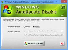 Company: SecurityXploded Country: India, Karnataka, Bangalore ASP member: No Company Web site: http://SecurityXploded.com Site of program: http://securityxploded.com/ Application info: http://securityxploded.com/windows-autoupdate-disable.php Author: SecurityXploded Organization Sales email: contact@securityxploded.com Support email: contact@securityxploded.com License type: Freeware Class: Security & Privacy::Other Specific: Utilities Categories: Utilities :: System Utilities Platform: Windows OS: Win2000, WinXP, Win7 x32, Win7 x64, Windows 8, Windows 10, WinServer, WinOther, WinVista, WinVista x64 System requirements: Language: English Limitations: