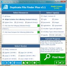 Duplicate File Finder Plus - Швидкий пошук дублікатів на ваших дисках, заснований на вмісті файлів. Програма дозволяє видаляти непотрібні файли для звільнення дискового простору, скоротити витрати на керування та уникнути непотрібної плутанини. Завдяки вбудованому високошвидкісному алгоритму порівняння файлів програма працює дуже швидко. Результати (дублікати файлів) на 100% точні, оскільки порівняння засновано на вмісті файлів, а не тільки на імені, даті останньої зміни або розмірі файлу. Крім того, програма дуже проста у використанні - потрібно лише вибрати ресурси (диски, папки, файли), вказати розміри, типи, а потім натиснути кнопку "Знайти", щоб отримати бажані результати. Можна безпосередньо натиснути цю кнопку, скориставшись запропонованими умовами пошуку. Як тільки пошук буде завершено, ви відразу побачите результат (перелік дублікатів файлів). Програма автоматично позначить непотрібні файли з допомогою функції швидкого вибору, відсортує результати за спаданням розмірів та виділить суміжні групи дублікатів файлів різними кольорами, щоб було зручно керувати дублікатами. Також можна виконати звичайні файлові операції, як то збереження, переміщення, видалення, запуск, перегляд властивостей, тощо... Звичайно, програма має деякі корисні опції (наприклад, інтелектуальний вибір, алгоритми порівняння для великих файлів, ігнорування системних/прихованих файлів, виключення папок, інше), щоб ефективно впливати на кінцевий результат.