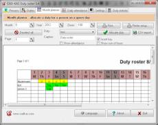 Create a duty roster for your staff. You first create a list of your staff. Now you can allocate a duty for each person and each day (i.e. holiday, ill, duty travel etc.). You can view and print a month plan or a day plan. The day plan shows you which persons are attendant and what their actual duty is. You can view and print a duty statistic for the month or the year. With this program you can also plan the vacations of your staff. You get a 1:1 preview of the printouts. The program can show you the statistics of the month or the year.