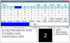 ECTkeyboard – программа из набора ассистивных приложений, разрабатываемых компанией EyeComTec (www.eyecomtec.com). ECTkeyboard представляет из себя виртуальную клавиатуру (таблицу символов), в которой пользователь может выбирать буквы, цифры или команды при помощи нажатия кнопки или педали. Также программа работает с устройствами айтрекинга, позволяя выбирать символ в таблице при изменении направления взгляда пользователя.