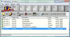 Keywords: Keyboard, Macro, Mouse, Automate, Automation EZ Macros can 'record' keystrokes and/or mouse movements or macros can be created and edited manually. You can automate tasks with just a few keystrokes and hundreds of possible macro hot keys are available. EZ Macros features both global and program-specific macros. 'Global' macros can be used with all your programs, while 'program-specific' macros work only with particular programs. Tired of typing in the date on documents? Just create a macro that puts the date in for you. Find yourself always using the same 3 programs on a certain project? Create a macro that launches all of them with a simple keystroke! When you create or edit a macro, EZ Macros lets you insert pauses, delays, sounds, date, time, and more! With the FREE companion program, EZ Scheduler, macros can be scheduled to run at Windows startup, once, hourly, daily, weekly, and monthly. On the Internet you can launch your email program or go to your favorite web sites by hitting a simple keystroke. With so many computers in use, in both home and business settings, many people are concerned about security. EZ Macros has that covered too! You can create 'secure' macros. A secure macro is protected by a password issued by you, and once secured, no one can see the keystrokes that activate a secure macro. In addition, secure macros can only be edited, deleted, or scheduled by you. So, if you're getting tired of doing the same things over and over, try EZ Macros. Make macros for all those repetitive things and simplify your life by doing them with simple keystrokes!