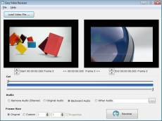Keywords: reverse video clip, reverse video image, inverse video, reverse video Easy Video Reverser indeed reverses video clip and save frames from last to first. You can also reverse audio or not, make the video frame size reasonably small or large, cut video section to reverse, and speed up (fast motion) or slow down (slow motion) video and audio at the same time. This cute tool make it is possible to encode a video in reverse so the resulting video plays in reverse. It is simply to watch the movie from end to start. Easy Video Reverser supports all popular video & Flash formats.