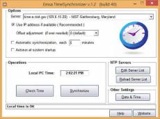 Emsa Time Synchronizer is an useful time synchronization utility / NTP client. Just one click and your computer clock is automatically set, using an NTP time server. The program runs as system tray icon. It can be configured to run automatically at Windows startup, and continously re-synchronize your clock at an user-specified time interval.