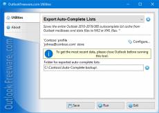 Keywords: free, freeware, outlook, add-in, add-on, autocomplete, export, backup Free, easy and fast way to save Microsoft Outlook 2010/2013/2016 auto-complete list cache from selected mailboxes and data files to XML or NK2 (advanced version) format files. This tool can be utilized to transfer, migrate, backup and edit Outlook auto-complete lists. Binary NK2 files is a convenient way to transfer or migrate while the XML text files are easy to backup and edit in any text editor. For your convenience, Outlook add-in and standalone Windows launcher application included with the product. For your convenience Outlook add-in allowing to run the tool right from Outlook and standalone launcher application allowing to run the tool without the need to start Outlook are included in the product.