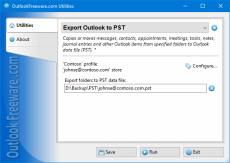 Keywords: free, freeware, outlook, add-in, add-on, pst, export, backup, folders, messages, contacts, calendars, journals, tasks, notes Free, fast and easy way to save email messages, contacts, appointments, meetings, tasks, journals, notes and other items from Outlook and Exchange folders and mailboxes to PST files. It can be useful to backup, transfer and migrate the contents of any Outlook/Exchange folders. You can also convert PST files between old ANSI and new Unicode formats and many other purposes. For your convenience, Outlook add-in and standalone launcher application for Windows are included that allows to run the tool without need to start the Outlook.