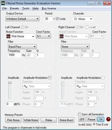 Company: Timo Esser Country: Germany, Waldenbuch ASP member: No Company Web site: http://www.esseraudio.com Application info: http://www.esseraudio.com/filtered-noise-generator.html Author: Timo Esser Sales email: support@esseraudio.com Support email: support@esseraudio.com License type: Shareware Class: Audio & Multimedia::Other Specific: Audio Categories: Audio, Science, Multimedia, Learning, Testing, Electronics, Acoustics Platform: OS: Win7 x32, Win7 x64, WinOther, WinServer, WinVista, WinVista x64, WinXP, Windows 8 System requirements: Sound Card Language: English, German Limitations: