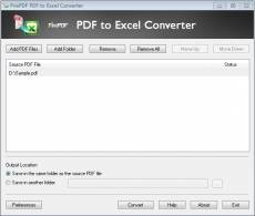 Company: FirePDF Corporation. Country: United States of America, FLORIDA, SANFORD ASP member: No Company Web site: http://www.firepdf.com Site of program: http://www.firepdf.com/pdf-to-excel.html Application info: http://www.firepdf.com/pdf-to-excel.html Author: FirePDF PDF Converter Sales email: pdfconverter@firepdf.com Support email: pdfconverter@firepdf.com License type: Shareware Class: Graphic Apps::Converters & Optimizers Specific: Graphics Categories: Business & Finance :: Office Tools, Multimedia and Design :: Utilities, Business & Finance :: Utilities Platform: OS: Win2000, Win7 x32, Win7 x64, Win98, WinServer, WinVista, WinVista x64, WinXP System requirements: NA Language: English Limitations: NA