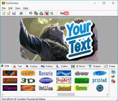 Keywords: 3D text effects, fonts logo, thumbnail maker, youtube thumbnail, web graphics, button maker, bevel shadow, FX text, 3D font, font styler FontTwister is the fastest and easiest way to create dazzling text effects. Use FontTwister as a video thumbnail maker for your YouTube videos. Create custom thumbnails and awesome title effects. These text effects can then be easily imported into Gimp, Word, Adobe Photoshop, Illustrator or After Effects. FontTwister comes with an impressive selection of templates for graphic styles, color gradients, textures, shapes, letter edges, 3-D bevels, shadows, buttons and frames. Simple intuitive controls let you interactively real-time view and select your desired effect. You can reedit text and effects at any time. The effect generator creates unlimited variations of amazing text effects. Use high impact, anti-aliased text for logos, 2D and 3D headings in letters, presentations, flyers, invitations, cards, faxes, posters, web graphics, labels, banners, buttons, covers. FontTwister supports several popular image formats (.jpg, .png, .tif, .bmp, .wmf). FontTwister is a very compact program (2.8 MB). It does not need OpenGL, DirectX or other libraries. FontTwister is fast, because FontTwister was developed and optimized at a PC with less spped and memory. The setup program does not modify your system (does not copy any dll file to system folder or change the registry). If you compare FontTwister with its competitors, then you will find out that FontTwister has the lowest price relative to its feature and quality.