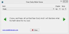 Keywords: Free Daily Bible Verse Going through a new verse from the Bible every day is quite an enlightening experience. However, it is not practically possible for many, especially those who are always on the move. Furthermore, dependence on portable devices for all requirements has also increased a lot amongst users. In order to get quotes from the Book on any mobile devices and platforms, the Free Daily Bible Verse is the ideal choice. It has verses from the Old and New Testaments and hence, can be quite useful to get inspiring and spiritual words every day. The tool can be downloaded and installed on any device that runs on Windows OS. What makes it even better is that it is free of cost. For 365 days, users will get verses from the Holy Book without fail and without paying any penny for the same. These can also be shared with family and friends via Facebook, Twitter, etc, and hence, it enables people to spread useful messages to quite a few others. The Free Daily Bible Verse does not take much time to download as it is a very small sized tool. It is clean and does not hamper the speed and performance of the device it is installed onto. The time of the day at which users wish for the Verse to be delivered can be determined according to their requirements and the tool ensures that there are no delays whatsoever. The messages or passages are accompanied by a beautiful background which adds to the whole package. The simple user interface of the Free Daily Bible Verse makes it ideal for even a novice to make the most of it without any glitches. It is indeed a very convenient tool to stay in touch with the Book without having to go anywhere.