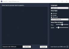 Company: Free TTS Country: Hong Kong, Hong Kong ASP member: No Company Web site: https://freetts.com Site of program: https://freetts.com Application info: https://freetts.com/Home/FreeTTS_Win Author: Shane Steven Sales email: support@freetts.com Support email: support@freetts.com License type: Freeware Class: Audio & Multimedia::Multimedia Creation Tools Specific: Categories: MP3 & Audio :: Audio Editors, MP3 & Audio :: Speech Utilities Platform: Windows OS: Win2000, WinXP, Win7 x32, Win7 x64, Windows 8, Windows 10, WinServer, WinOther, WinVista, WinVista x64 System requirements: .Net Framework 4.0 Language: English Limitations: None