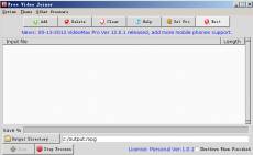 Keywords: Video, joiner, freeware Free Video Joiner is the best freeware for join same codecs video file. It support avi, 3gp, 3gp2, 3gpp, 3g2, wmv,mp4, dv, mov, m4v, swf, nut, rm, rmm, rv, rmvb, flv, mpg, mpeg, mpe, dat, mkv, qt, asf, webm, f4v, div, divx, ivf, ogv, mts, m2t, m2ts, ts, mod, tod, vro, dvr-ms and amv; It requires the same codecs, but different container formats can be used; Add unlimited video files in the fast and easy setup interface; It is very easy to use without any special setting, only a few clicks complete the task of video file join; It can detect your hardware configuration and decide an optimized join scheme automatically; Join your Video video files and preserve video quality after adding more video files by click mouse button; Provide >300% joining speed by multithreading, so fast beyond your imagination; Automatically shutdown the computer after join task.