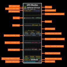 Keywords: GPU, NVIDIA, ATI, AMD, shader, clock, memory, load, fan, PCI-E, windows, Sidebar, computer, system With this GPU Monitor gadget you can display your Vendor, Model, GPU (Clock Speed, Temperature, Usage), Memory (Clock Speed, Size, Usage), Fan (Speed, Usage), Shader Clock Speed, PCB Temperature and PCI Express. It does not require any 3rd party applications. Just the latest full feature driver from your given graphic card vendor is needed. Resizable! Save settings to file. (File will be created - Path: %APPDATA% File: gadgetname_Settings.ini). Color changeable for all gadget's elements, including background. Supported GPU's: - NVIDIA Desktop Cards (Generation: 8, 9, 100, 200, 300, 400, 500, 600) - ATI Desktop Card (Generation HD 2000, 3000, 4000, 5000, 6000, 7000) - Several NVIDIA Mobile Cards