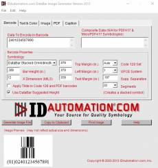 Keywords: databar image generator, databar image software, databar image application, databar image, databar barcode image The GS1 DataBar Barcode Image Generator for Windows creates images via command prompt or an easy-to-use interface for all GS1 DataBar variants in 32 and 64-bit Windows environments. Barcode images can be copied and pasted into other applications, or saved as image files in formats for JPEG, TIFF, PNG, BMP, GIF and WMF. Additional features include: -Supports all GS1 DataBar variants including DataBar-14, DataBar Limited, DataBar Stacked, DataBar Stacked Omnidirectional, DataBar Truncated, DataBar Expanded, DataBar Expanded Stacked, GS1 Composite components and related barcode types including PDF417, MicroPDF417, UPC/EAN, GS1-128, and Code 128. It also supports the DataBar Coupon Barcode. -Generates images with the GUI or from a command prompt batch file. -Generates multiple image files dyamically from the command line or text file. -Uses mature generation routines that have been used in IDAutomation products since 2001. The GS1 DataBar Barcode Image Generator for Windows is available in a variety of license options to suit your usage scenario. There are a range of options for single or multi-users as well as coverage for all users at a single site, Multi-Site licenses for users and distribution across multiple sites and locations. This product is also availalbe in several other versions for support in OSX environments or Windows support for linear and 2D barcode types.