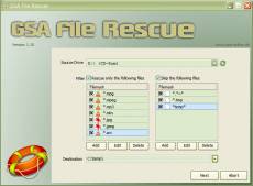 Keywords: data rescue, bad file copy, rescue files, damaged cd copy, safe files GSA File Rescue safes all your data from unreadable CDs, DVDs or other Media and lets you open them again. Often you have stored important files on media like floppy disks or CDs. They will get lost sooner or later as almost every media is ageing (CD Longevity). Don't lose what's important to you. Use GSA File Rescue to store the data on a safe place and safe as much as possible. You will even be able to use the "Batch Mode" that can operate without a single mouse click. You simply insert the media, wait till the program is ready with the job and ejects the CD/DVD. Then you simply insert a new media and it continues. This data recovery solution is fully configurable to your needs. It is safe and risk free as no data on the original drive is modified. As much as possible data is rescued.