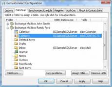 Keywords: exchange, outlook, synchronize, contact, mail, calendar, task, note, journal, database, ODBC, crm, backup, oracle, mysql, access, sql server, sybase, watcom, MSDE, ADABAS, IBM DB2, INFORMIX, InterBase, PostgreSQL, SQLBase, dBase, FoxPro, Paradox Have you ever been frustrated by the fact that you can't see and use vital information stored in your database while working in Outlook or Exchange? GeniusConnect turns Outlook into a more powerful information management tool through database connectivity! -Improved efficiency while working in Outlook through immediate access to current database information. -Easy access to contact, calendar and customer information, stored in your database. -Create Tasks in Outlook based on events in your database. -Ability to quickly update and back-up information. -Offers complete flexibility by allow connectivity to any standard SQL Database. -2 way synchronization -Attachments synchronization -Extract attachments to a folder -Public folders support GeniusConnect will synchronize Outlook or Exchange data with any relational database that supports ODBC (MS Access, mySQL, MS SQL Server, Oracle etc.). A folder (Calendar, Contacts, Mail, Journal, Notes and Tasks) can be linked to a database table or view. You can use your own table structure and define conversions for columns with data type's that are not compatible with an Outlook field. It is possible to use GeniusConnect on multiple Outlook or Exchange folders and multiple databases. Supports synchronization of the following Folder types: Microsoft Outlook 2002,2003,2007,2010,2013,2016,2019,2021,365: Calendar, Contact, Mail, Task, Journal, Note. Microsoft Outlook 2000:Contact. Technology GeniusConnect is an Outlook Add-On and becomes an integral part of Outlook after installation. GeniusConnect adds a new toolbar to Microsoft Outlook with buttons specific for synchronizing data and configuring GeniusConnect.