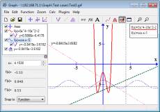 Keywords: mathematic, graph, graphing, drawing, plotting, functions, tangents, evaluating, points This program is for drawing graphs of mathematical functions in a coordinate system. Graphs may be added with different color and line styles. Both standard functions, parameter functions and polar functions are supported. It is possible to evaluate a function at an entered point or tracing the function with the mouse. It is possible to add shadings to functions, and series of points to the coordinate system. Trendlines may be added to point series. It is possible to save the coordinate system and everything on it as an image file. It is also possible to copy an image into another program. Text labels may be placed anywhere in the coordinate system.