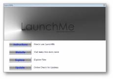 Company: Chris Dunn Country: Australia, NSW, Ryde ASP member: No Company Web site: http://www.chrisdunn.name Site of program: http://www.chrisdunn.name Application info: http://www.chrisdunn.name/jm/software/55-launchme Author: Chris Dunn Sales email: chris@chrisdunn.name Support email: chris@chrisdunn.name License type: Freeware Class: Audio & Multimedia::Presentation Tools Specific: Audio Categories: Business & Finance :: Presentation Tools, Multimedia and Design :: Authoring Tools, Multimedia and Design :: Presentations, Multimedia and Design :: Utilities, Shell & Desktop Enhancements :: Start-up Screens Platform: Windows OS: Win2000, WinXP, Win7 x32, Win7 x64, Windows 8, Windows 10, WinServer, WinOther, WinVista, WinVista x64 System requirements: Windows Language: English Limitations: None