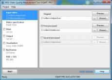 Keywords: video, quality measure, VMAF, PSNR, MS-SSIM, SSIM, NIQE, GPU, video quality, codecs, comparison, video analysis Free program for video quality measurements. Program main features include: 1. Support of 19 objective metrics and 5 plugins. Among them standard metrics ( VMAF, NIQE, PSNR, MSAD, SSIM, VQM, etc ) and modern metrics with good subjective quality correlation ( MS-SSIM, 3-SSIM). 2. Support of more all basic video and image formats formats, including HDR with up to 16-bit depth and floating point samples. Supported formats include AVI, YUV & Y4M (YUV, YV12, UYVY, etc.), BMP, MOV, VOB, WMV, and others. 3. Metric Visualization. Program can generate visualization video for each specified metric. This video contains visual information about metric values in each pixel of the frame. Visualization video allows easily judge about video quality nature. 4. High metrics calculation speed: multi-core processors are supported, MMX, SSE and OpenMP optimizations are used and GPU accelerated SSIM-based metrics implementation are available. 5. Comparative Analysis. VQMT is able to compare 3 files at a time and more with CLI interface (PRO version only) 6. ROI Support. The metric calculation is possible for specified region of the frame (Region of Interest, ROI). 7. GUI and Batch Processing. VQMT consists of GUI and command line tools. 8. Plugins Interface. You can easily develop your video quality metric via plugin mechanism. 9. Universal Format of Results. Results are stored in *.CSV format. 10. HDTV Support. Professional version of VQMT supports HD resolution. 11. Open-Source Plugins. Open-source plugins are available, it can be used as a starting point for custom video metric. 12. 32-bit and 64-bit versions are available Look for the MSU VQMT homepage ( http://compression.ru/video/quality_measure/video_measurement_tool_en.html ) or our LinkedIn group ( http://www.linkedin.com/groups/Video-Quality-Measurement-Tool-4073702 ) for the news and updates!