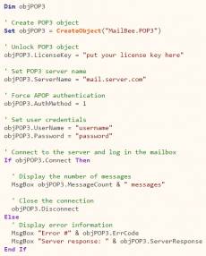 Keywords: email, e-mail, mail, pop, pop3, ssl, tls, gmail, asp, vb, vba, vb6, visual basic, delphi, component, com, activex, dll, object, ocx, download, html, message, attachment, ntlm, gssapi, apop, authentication, body, header, 32, 64, parse, delete, uid, receive, retrieve, mime, base64, uue MailBee POP3 ActiveX component enables Windows and classic ASP applications to receive, parse and manage mail on POP3 servers (including Gmail). Supports TLS/SSL, S/MIME, HTML mail with embedded pictures, secure APOP authentication, MS Exchange authentication (NTLM, GSSAPI/NTLM, GSSAPI/Kerberos), Integrated Windows Authentication, international charsets, UTF-8, international e-mail addresses (IDN domains), multiple attachments, UID list, custom commands, downloading headers and entire messages. Provides accurate and fast MIME parser. MailBee POP3 component can be used together with MailBee S/MIME and MailBee SMTP components. For instance, it's possible to download e-mail from POP3 server, modify it and resend it to SMTP server. MailBee.dll is available in 32-bit and 64-bit versions. It's very light-weight and has no visual interface (pure COM component). Works in all Windows versions from 2000 to 2016 with most languages which support ActiveX. Samples are available for Delphi, Visual Basic 6, classic ASP, Visual C++, and Cold Fusion. Royalty-free distribution.