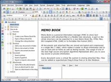 Keywords: pmi, memo, book, text, document, PDF, CHM, encrypted, compressed Memo Book is a personal information manager (PIM) to store text documents with attached files in a flexible tree structure. A part or the whole structure can be exported to a new Memo-Book-file, HTML-files, MS Compiled HTML (CHM) or to Portable-File-Format (PDF). All documents and attached files are stored encrypted and compressed in a single file (*.mbk), which makes it easier to share information and to use at work and at home as well as during travels. The usage of one of the best high secure encryption algorithms (AES 256) allows you to save top secret or private information. Every document owns a virtual file system to storing attached files. Files can be added or exported per Drag & Drop from or to the Windows Explorer. This virtual file system can be navigated like the Windows Explorer. The text editor owns the almost same features like MS Word and supports paragraphs, tables, lists, images, background, URL, alignment, header and footer, page numbers as well as a integrated live spell check for many languages. Some features: • Flexible tree structure • Attached files to every document • MS Word like text editor • Export a structure to a new Memo-Book file • Export a structure to HTML-files • Export a structure to MS Compiled HTML (CHM) • Export a structure to Portable-File-Format (PDF) • Import from another Memo-Book file • Export and Import of a document as Richtext, HTML, MHT, PDF, MS-Word and many more • High secure encryption (AES 256) • Text documents and attached files will be stored with compression in the Memo Book • Integrated live spell check for many languages • Integrated file viewer for common files • Function to speech the document text • Full Unicode support • Many user languages