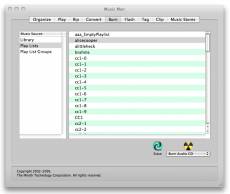 Keywords: mac, convert, converter, id3 tag editor, player, play, cd burner, burn, cd ripper, rip, make clip, MP3, WMA, FLAC, MIDI, WAV, AAC, M4A, M4B, AIFF, Ogg, M4B, MP2, audio cd, dvd, usb flash drive, osx, os x Rip, convert, burn, play music on Mac OS X. Music Man is easy to use and includes all the features you need from a converter, CD Ripper, CD Burner, Player, ID3 Tag editor - all-in-one. Convert most formats - MP3, WMA, FLAC, MIDI, WAV, AAC, M4A, M4B, AIFF, Ogg, MP2. Rip from CD. Burn to CD, DVD - Audio Cd, MP3 CD, DVD Audio. Play everything from anywhere - music from hard drive, CD, DVD, USB Thumb Drive. Edit tags. Make iPhone ringtones and make MP3 clips. (Does not convert DRM protected music.) xxx Rip, convert, burn, play music on Mac OS X. Music Man is easy to use and includes all the features you need from a converter, CD Ripper, CD Burner, Player, ID3 Tag editor - all-in-one. Convert most formats - MP3, WMA, FLAC, MIDI, WAV, AAC, M4A, M4B, AIFF, Ogg, MP2. Rip from CD.