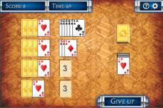 Osmosis, also known as Treasure Trove, is an interesting solitaire game played with a deck of 52 standard playing cards. Your goal in this game is to move all cards by suit regardless of ranks to the foundations. When the game starts, you will be given 4 vertically arranged reserve piles on the left of the screen. Each of these reserve piles has 3 face-down cards plus 1 face-up card on the top. In the middle of the screen are 4 vertically arranged foundations. 1 face-up card will be dealt to the top foundation as the starting rank, while the other foundations are empty. The remaining cards are placed face-down to the stock pile at the top right, and then 1 face-up card will be dealt to the discard pile underneath. The foundations are to be built by suit regardless of ranks. Note that the three empty foundations must begin with cards of the same rank as the first card of the top foundation, for example, if the first card of the top foundation is an 8 of hearts, the other foundations must also start with an 8. Cards in the foundations are fanned from left to right. After a card of the starting rank has been placed to an empty foundation, you can move a card to this foundation if a card of the same rank has already been placed in the foundation above it. For example, an 8 of spades has been moved to the second foundation, and in the top foundation are 8, 3 and J of hearts. In this case, you can move 3 and J of spades to the second foundation. Each time you can click and drag the top card from a reserve pile or the discard pile to the foundations. If you have run out of moves, you can click the stock pile to deal a new card to the discard pile. When the stock pile has run out of cards, you can click the empty stock pile to redeal. Play now and see how quickly you can collect all cards!