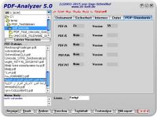 Keywords: PDF, Adobe, Acrobat, Eigenschaften, Attribute, Analyse, Passwort, Verschlüsselung, 40 Bit, 128 Bit, 256 Bit, Text extraktieren, PDF2Text, Dokument, Layout, Sicherheit, XML-Export Zur Freeware-Version... Beim PDF-Analyzer handelt es sich um ein Informationstool speziell für PDF-Dateien. Wer viel mit PDF-Dateien arbeitet, wird es zu schätzen wissen, wenn man - ohne große PDF-Anwendungen zu starten - z.B. im Explorer (Kontextmenü -> Senden an) direkt alles Wissenswerte zur Prüfung einer PDF-Datei erfahren kann. Das reicht von den Dokumentinformationen wie z.B. Titel, Themenzugehörigkeit und Seitenformat oder auch Seitenanzahl einer Datei über sicherheitsrelevante Dinge wie Druck- und Kopiererlaubnis oder auch Verschlüsselungsstärke und Passwortverwendung bis zu den Dateiattributen und JavaScript- bzw. RDF-Inhalten! Neben dem Einklinken ins Explorer-Kontextmenü ist auch die Verwendung als 'PDF-Browser' möglich. Hat man eine gewünschte Datei gefunden, läßt sie sich sofort über einen verknüpften Reader (wie z.B. den Acrobat Reader) starten oder ausdrucken. Die angezeigten, umfangreichen Daten zur selektierten PDF-Datei können automatisiert als xml-Datei exportiert werden! Zusätzlich bietet das Programm Textextraktion und Textanalyse der ausgewählten PDF-Dateien an. Hierfür ist nicht das Starten spezieller zusätzlicher PDF-Bearbeitungssoftware nötig! Zur Pro-Version... Die Pro-Version bietet zusätzlich Passwortreset, Änderungsmöglichkeiten für alle relevanten Dokument-, Sicherheits- und Dateiinformationen der verarbeiteten PDF-Dateien. Vorschalten und Anfügen von Text- und Bilddateien, das Verbinden mehrerer/aller PDF-Dateien, umfangreiche und verzeichnisweite Suchfunktionalität (inkl. Volltextsuche!), eine Wasserzeichen-/Logo-Funktion für Bild und Text, JavaScript-/RDF-Extraktion, dateiinternes Anlegen eigener Notizen, einzelner und verzeichnisweiter XML- und CSV-Export der Dateidaten, anlegbare Hinweisfenster, variable Linkintegration (email/url), löschen und trennen von Dokumentseiten, (neues) variables Durchnumerieren von PDF-Dokumenten, modifizieren der Anzeigeoptionen, PDF-Generierung für Bilddateien, Passwortvergabe und mehr!